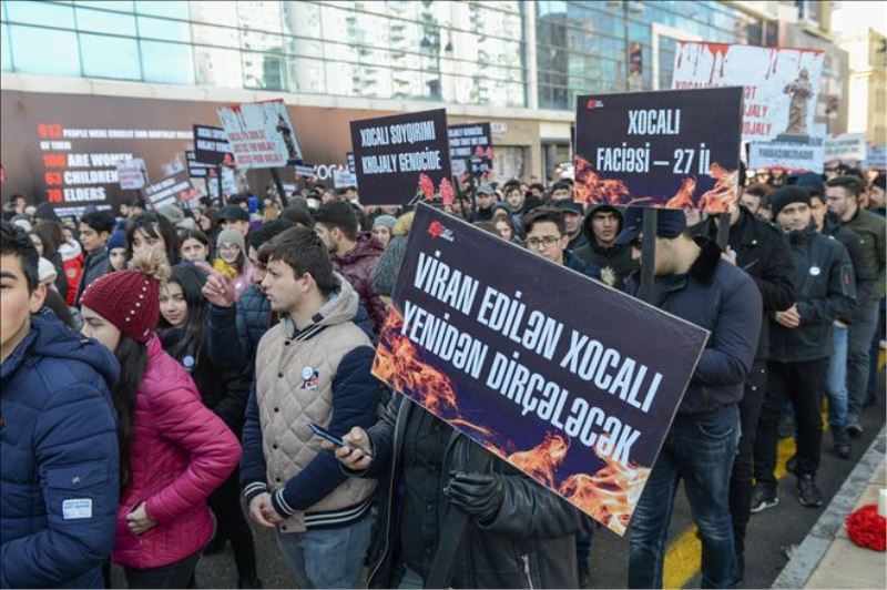 Azerbaycan´nın başkenti Bakü´de, Hocalı´da hayatını kaybeden 613 kişi, 27´nci yıldönümünde anıldı. Programa Azerbaycan Cumhurbaşkanı İlham Aliyev başta olmak üzere devlet erkânından çok sayıda önemli isim katıldı. Tören kapsamında önce bakanlar, milletvekilleri ve çok sayıda bürokratla birlikte Hocalı anıtını ziyaret eden Aliyev anıt önüne çelenk bırakarak saygı duruşunda bulundu. Daha sonra ise Başbakan Nevruz Mammadov, Milli Meclis Başkanı Oktay Asadov, Aliyev´in eşi ve aynı zamanda Azerbaycan Cumhurbaşkanı Birinci Yardımcısı Mehriban Aliyeva anıta gül bıraktı. Binlerce Azerbaycanlı vatandaş da, Ermenilerin katlettiği 613 kişiyi anmak ve saygı duruşunda bulunmak için Hocalı Anıtı´na akın etti. Türkiye´nin Bakü Büyükelçisi Erkan Özoral da büyükelçilik çalışanları ile birlikte Hocalı Abidesi´ni ziyaret etti.