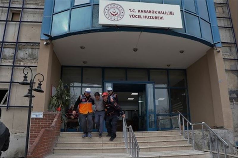 Karabük´te huzurevinde kalan yaşlılara deprem sonrası meydana gelen yangınlarda nasıl hareket etmeleri konusunda bilgilendirmek amacıyla tatbikat gerçekleştirildi.