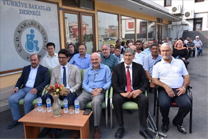 Törende açılış konuşmasını yapan Türkiye Sakatlar Derneği Karabük Şube Başkanı Muhittin Yılmaz; “Türkiye Sakatlar Derneği Karabük Şubesi olarak 22 yıldır Karabük´te engelli vatandaşlara hizmet vermekteyiz. Bugüne kadar sayısız şekilde tekerlekli ve akülü sandalye ile ihtiyaç malzemesi yardımlarıyla engelli vatandaşlarımıza destek olduk. Karabük Valiliğimiz, İl Özel İdaremiz, KARDEMİR A.Ş ve hayırsever vatandaşlarımızın katkıları alınan 10 adet tekerlekli ve 5 adet akülü sandalyeyi ihtiyaç sahibi engelli vatandaşlarımıza teslim edeceğiz. Bunun yanında Genel merkez Ankara´da olan Körleri Eğitim ve Kalkındırma Derneği´nden temin ettiğimiz 6 adet beyaz baston ve konuşan saat dağıtımını da gerçekleştiriyoruz. Emeği geçen herkese ayrı ayrı teşekkür ederim” diye konuştu.