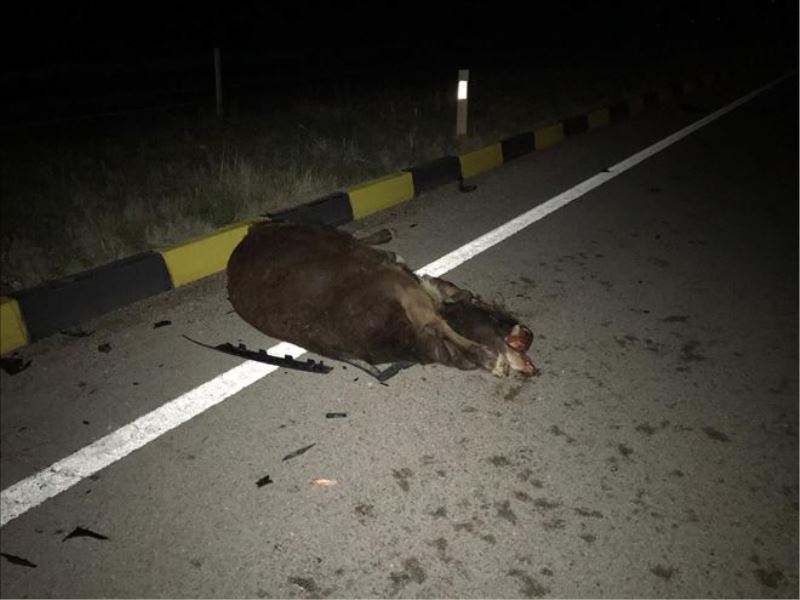 İki aracın çarptığı inek telef oldu
