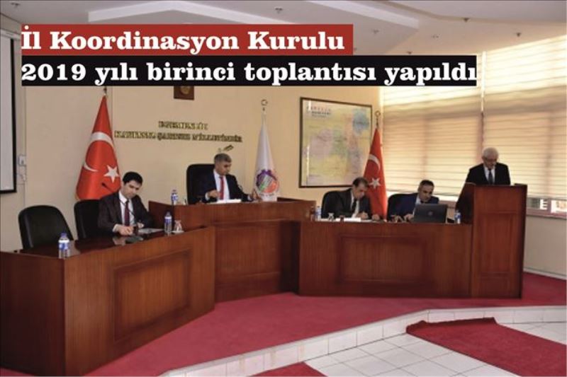 Kamu kuruluşlarının yatırımlarının izlenmesi, çalışmalarının koordine edilmesi, il düzeyindeki yatırımların daha etkin bir şekilde yürütülmesini sağlamak amacıyla düzenlenen 2019 yılı İl Koordinasyon Kurulunun birinci toplantısı Vali Fuat Gürel başkanlığında, İl Özel İdaresi Meclis Toplantı Salonu´nda yapıldı.