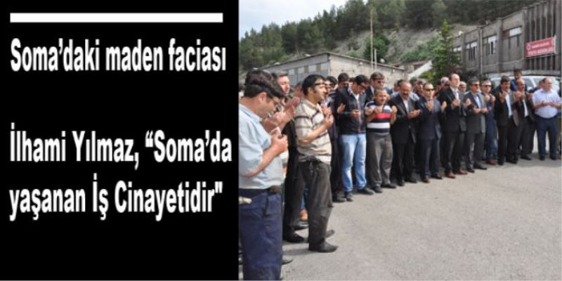 'Soma’da yaşanan İş Cinayetidir' diye Yılmaz, ihmal olmasa, denetimsizlik olmasa bu cinayetlerin yaşanmayacağını söyledi. Yılmaz, '13 Mayıs 2014 Salı günü Manisa’nın Soma ilçesinin Eynez Köyü karanlık dere mevkiindeki soma holding’e bağlı soma kömür işletmeleri A.Ş.’ye ait linyit madeninde ülkemiz tarihinin en büyük iş cinayeti gerçekleşmiştir. Yetkililerin yaptığı açıklamaya göre şu ana kadar 205 maden emekçisi yaşamını yitirmiş, çok sayıda işçi yaralanmış, 200’ü aşkın emekçi ise madende mahsur kalmıştır. Bu yürek yakan iş cinayeti bizleri derinden yaralamış ve yasa boğmuştur.