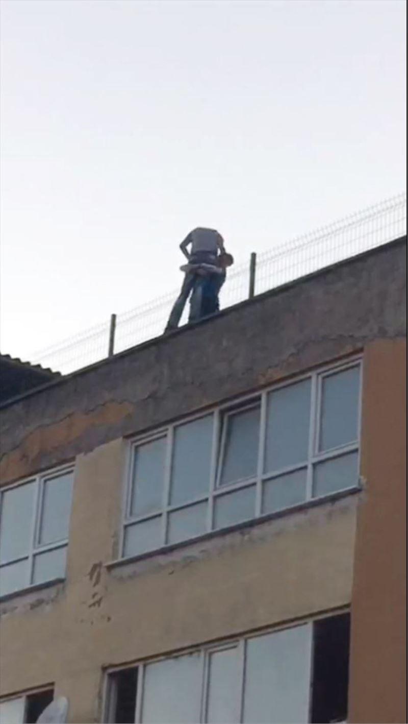 Geçen günlerde D.A. isimli şahıs, Hürriyet Mahallesi Ankara Caddesi´nde bulunan 5 katlı bir binanın çatı katına çıkarak intihara kalkıştı. Çevredeki vatandaşların haber vermesi üzerine olay yerine polis, 112 ve itfaiye ekipleri sevk edildi. Olay yerine gelen 112 Acil Sağlık ekipleri ile itfaiye ekipleri gereken tedbirleri alırken, çatı katına çıkarak D.A. ile konuşmaya başlayan polis, şahsı ikna etmek için uzun bir süre dil döktü. Çabaları sonuç vermeyen polis memuru, intihara kalkışan şahsın kıyafetini çıkarmasını fırsat bilip kucaklayarak demir tellerden uzaklaştırdı. Polis memurunun yürekleri ağza getiren müdahalesi ile D.A. isimli şahıs etkisiz hale getirildi. Yaşanan o anlar ise bir vatandaşın cep telefonu kamerasına yansıdı.