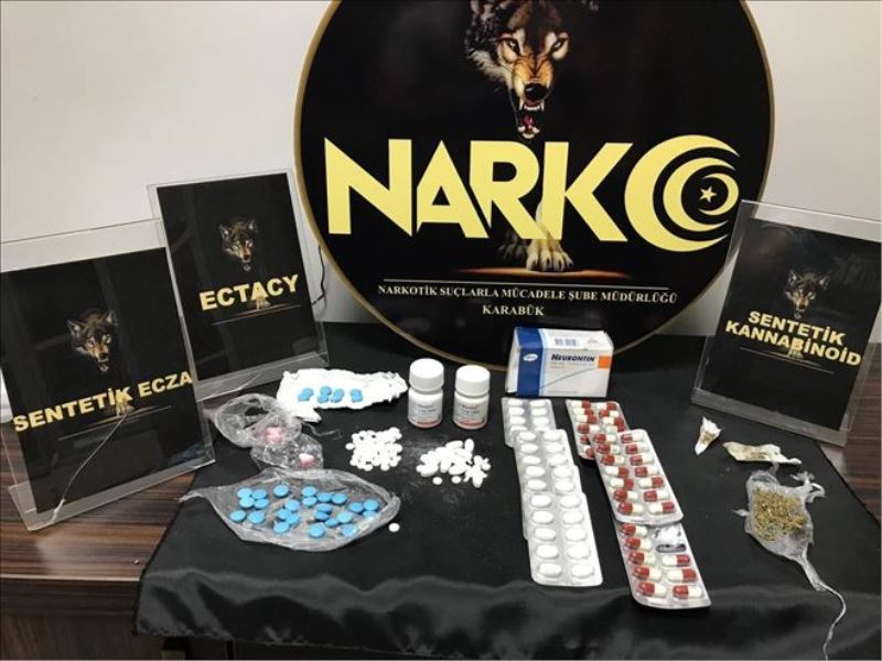 Edinilen bilgiye göre, Narkotik Suçlarla Mücadele Şube Müdürlüğü ekipleri H. G.(57) isimli şahsın İstanbul ilinden Karabük´e uyuşturucu madde getireceği bilgisinin alınması üzerine çalışma başlattı. Eskipazar ilçe girişinde aracının durdurulduğu şahıs yanında bulunan Ü.G., İ.G. ve Y. B. ile birlikte gözaltına alındı. Ekiplerin araçta ve şahısların üzerinde yaptığı aramada 1.76 gram kadar sentetik kannobinoid maddesi , 35 adet ectasy hap, reçeteye tâbi 80 adet Rivotril tablet, 51 adet Neurotin tablet ve 36 adet Lyrca tablet (sentetik ecza) ele geçirildi.