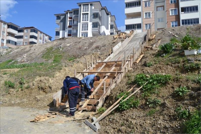 Ayrıca Fen İşleri Müdürlüğü ekipleri istinat duvarı çalışmalarının yanı sıra Aydınlıkevler Mahallesindeki merdiven çalışmalarına da devam ediyor.