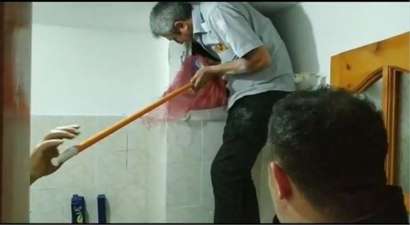 100. Yıl Mahallesi Bahçeşehir Apartmanı´nda oturan Cemil Erdoğan (23), kanat çırpmaları sesinin geldiği havalandırma boşluğunda mahsur kalan güvercini fark etti. Kendi çabası ile güvercini kurtarmak isteyen Erdoğan, başarılı olamayınca Karabük itfaiyesinden yardım istedi. Kısa sürede apartmana gelen ekipler, evdeki paspas sopasına soğan çuvalını bağlayarak banyodaki pencereden havalandırma boşluğuna uzattı. Ayakları çuvala takılan güvercin bulunduğu yerden çıkartılarak doğaya salındı.