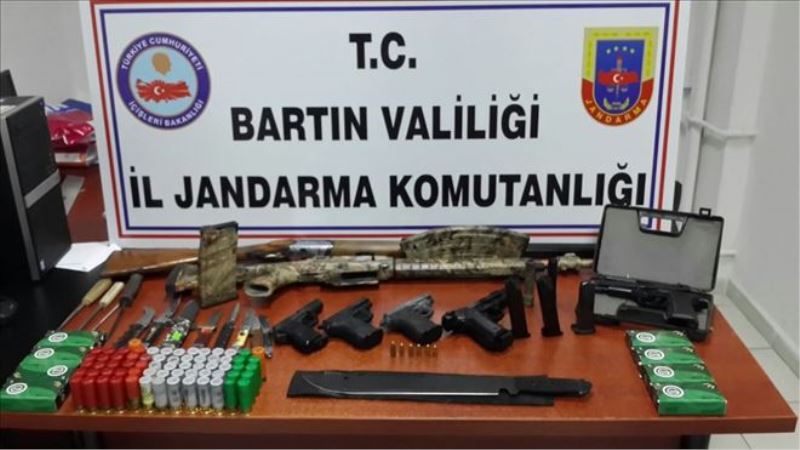 Edinilen bilgiye göre, organize sanayi bölgesinde, ateşli silah ticareti yapıldığı duyumunu alan Bartın İl Jandarma Komutanlığı ekipleri araştırmaların ardından operasyon gerçekleştirdi. Operasyonda yakalanan 1 şahsın aracında ve evinde yapılan aramalarda 1 adet 7,65 mm. çapında ruhsatsız Vzör marka tabanca, 4 adet kurusıkı olduğu değerlendirilen tabanca, 3 adet ruhsatsız av tüfeği, 5 adet 7,65 mm. ve 1 adet 9 mm. çapında tabanca fişeği, 342 adet kurusıkı tabanca fişeği, 66 adet av tüfeği fişeği, 1 adet 50 cm. uzunluğunda pala, 8 adet farklı modellerde bıçak, 10 adet av tüfeği parçası ve ateşli silah tamirine yarayan el aletleri ele geçirildi. Zanlı ile ilgili adli tahkikatın sürdüğü belirtildi.