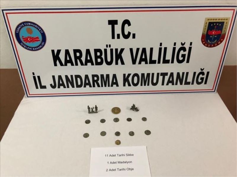 Edinilen bilgiye göre, Safranbolu ilçesine bağlı Aşağı Güney köyünde tarihi eser satışı yapılacağı yönünde istihbarı bilgi alan Jandarma İstihbarat ve KOM Şube ekipleri ile Toprakcuma Jandarma Karakol Komutanlığı ekiplerince ortak operasyon yaptı. Ekipler tarafından durdurulan otomobilde arama yapan ekiplerce gizlenmiş vaziyete Roma dönemine ait olduğu tahmin edilen 11 sikke ile bir adet madalyon ve 2 adet farklı figürler bulunan heykel ele geçirildi. Olayla ilgili olarak otomobil sürücüsü S.Ş ile araçta bulunan F.U ve Y.Y isimli 3 kişi gözaltına alındı.