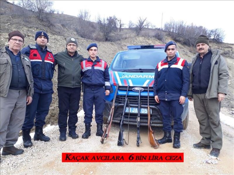 Kaçak avlanan 4 avcıya 'kara avcılığı kanununa muhalefet' suçundan toplam 6 bin lira ceza kesildi.