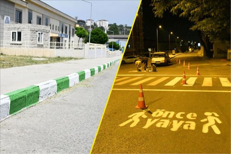 Şehir merkezi başta olmak üzere tüm mahallerde, caddelerde ve sokaklarda sürücülerin yayalara öncelik vermeleri adına çalışmalar devam ediyor. Silinmiş ve görünürlüğünü kaybetmiş mevcut çizgiler yeniden çizilirken, yaya geçit çizgisi olmayan noktalarda da planlama doğrultusunda yeni çizgiler çiziliyor. Araç sürücülerinin yaya ve okul geçidine yaklaşırken, güvenle yavaşlayabileceği ya da durabileceği uygun mesafe göz önüne alınarak uyarılması sağlanacak. Bu kapsamda “Önce Yaya” görselleri şeritlere ve geçiş çizgilerinin önüne çiziliyor. Kaldırım kenarlarının boyanması ve yeni tasarlanmış logoların görselliği ile de sürücülerin dikkatini çekerek uyarıcı görevi yapıyor.