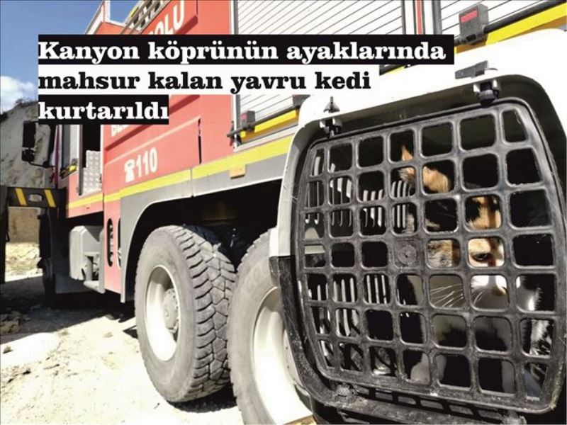 Kanyon köprünün ayaklarında mahsur kalan yavru kedi kurtarıldı