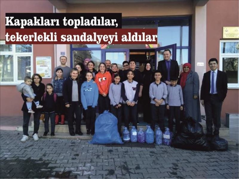 İsmetpaşa İlk ve Ortaokulu öğretmen ve öğrencileri toplanan kapaklar Karabük Engelli Engelsiz Gençlik ve Spor Kulübü Başkanı Sevim Karaman Karadayı ve yönetim kurulu üyelerine teslim edilerek tekerlekli sandalye alındı.