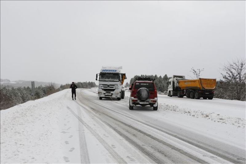 Yoğun kar yağışı nedeniyle bazı sürücüler ilerlemekte zorluk yaşarken, bazı tırlar yolda kaldı. Sürücüler dikkatli şekilde ilerlerken, bazı sürücüler yol kenarında araçlarına zincir taktı. Yolda kalan bazı tırlar ise ciplerle çekildi.