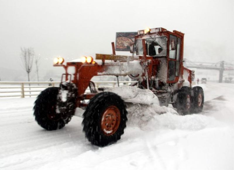 Kent merkezinde kar kalınlığı 15 santimetreye ulaşırken, karayolları ve belediye ekipleri kar küreme çalışması yaparak yolları açmaya çalışıyor.