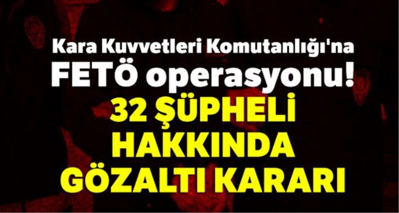 Kara Kuvvetleri Komutanlığı´na FETÖ operasyonu: 32 şüpheli hakkında gözaltı kararı