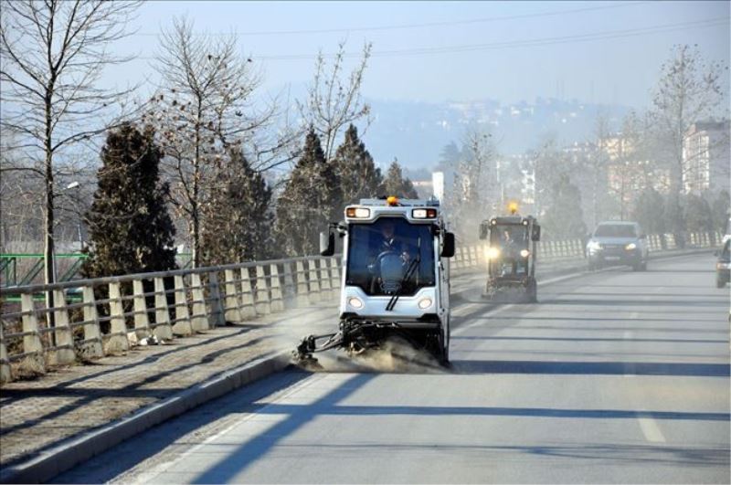 Yoğun kar yağışında vatandaşların güvenli ve sağlıklı ulaşım sağlayabilmeleri için 24 saat titizlikle çalışan Karabük Belediyesi, karların erimesiyle birlikte cadde ve sokaklarda oluşan toz ve çamur birikintilerini temizlemek için kapsamlı bir çalışma başlattı. Kış ayları nedeniyle yol kenarlarında biriken çamur ve toz birikintileri vakumlu süpürge araçlarıyla temizleniyor. Çevre temizliğine büyük önem veren Karabük Belediyesi, yol süpürmede daha verimli sonuç alabilmek için son teknoloji vakumlu süpürge araçları ile çalışmalarına devam ediyor. 4,7 metreküp çöp toplama kapasitesi bulunan araç 14 bin metreküp emiş gücüyle yolardaki tozları anında temizliyor. İki fırçalı, ortadan emişli ve tek motorlu hidrostatik araçlar, yakıt yönünden de oldukça tasarruflu. Manevra kabiliyeti yüksek olan araçlar, dar alanlara kolaylıkla girebildiği için operatöre de rahat kullanım imkânı sunuyor. Süpürge aracının giremediği yerler süpürgeci işçiler tarafından süpürülmekte olup, ana caddeler ve yollar her gün program dahilinde süpürülmekte.