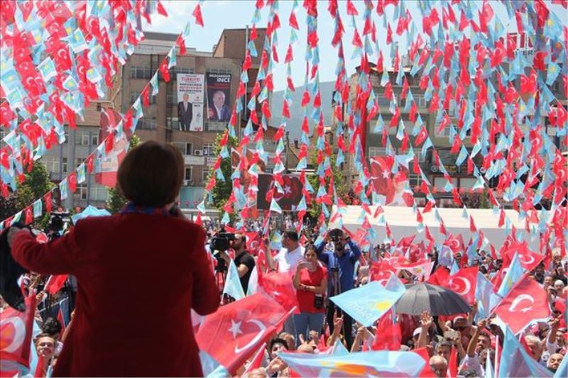 İYİ Parti Genel Başkanı ve Cumhurbaşkanı Adayı Meral Akşener, “Gencin gelecekle umudu olduğu, adaletin sağlandığı, demokrasinin işlediği, 160 yıllık tecrübemiz olan iyileştirilmiş parlementer sistemin işlediği, ekonominin güvenle yönetildiği, sabah erken kalkanın ağzından laf çıkarmadığı, dış politikada Atatürk´ün ortaya koydu cihanda barış, yurtta barış ilkesini hayata geçilmiş, komşularıyla iyi geçinen, Güney Doğu´da Akdeniz´de Suriye´de Irak´ta sınır olan şehirlerini ekonomisi can çekişiyor, ülkenin milli çıkarların önde olduğu bir dış politikayı inşallah bu ülkeye hep beraber hakim kılacağız. Yeni Aziz Sancarların Türkiye´de yıldız gibi parladığı bir eğitim sistemini Türkiye´de hakim kılacağız. Başaracağız başaracağız başaracağız.” dedi.