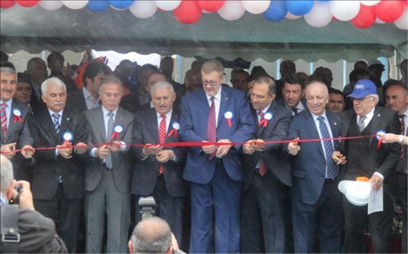 Yoğun yağmur nedeniyle protokol alanından konuşan Bakan Yıldırım, projenin Karabük-Zonguldak kesimi açılış töreninde, 'bereket diyarı' Karabük´e hayırlı bir iş için geldiklerini belirtti.