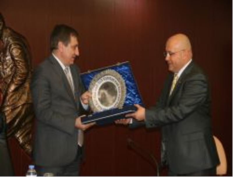 Konuşmaların ardından Karabük TSO Başkanı Sedat Namal, Vali Küçüke üzerinde, Saygı, sevgi, birlik ve beraberlik, tarafsızlık ve adalet, sosyal sorumluluk, sanayi ve ticaretin gelişmesi, istihdama yönelik faaliyetler, teknolojik üretim, eğitim ve başarı. Sayın İzzettin Küçük, ülkemizin muasır medeniyetler üzerine çıkarılması, Karabükümüzün bu gelişmeye ekonomik ve sosyal kalkınmasının gerçekleştirilmesi amacıyla tüm gayretimizi ortaya koyarak, çalışmalarımıza Karabük TSO Yönetim Kurulu üyeleri olarak söz veriyoruz yazılı söz plaketi verdi.