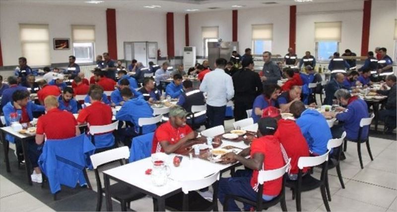 Akşam saatlerinde Osmanlıspor maçının idmanını yaptıktan sonra kırmızı mavili takım anasponsoru KARDEMİR fabrikalarını geçerek işçilere sürpriz yaptı. KARDEMİR yemekhanesinde işçilerle birlikte sıraya girerek yemek alan sporcular daha sonra işçilerle birlikte akşam yemeği yedi.