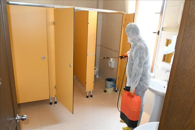 Belediye ekipleri, Türkiye´de görülen virüs karşısında ilk andan itibaren vatandaşların yoğun olarak kullandığı şehirler arası otobüs terminali, halk otobüsleri, dolmuşlar, pazar yerleri, alışveriş merkezleri, okullar ile umumi tuvaletlerde virüse karşı dezenfektasyon ve ilaçlama çalışmalarına başlamıştı.