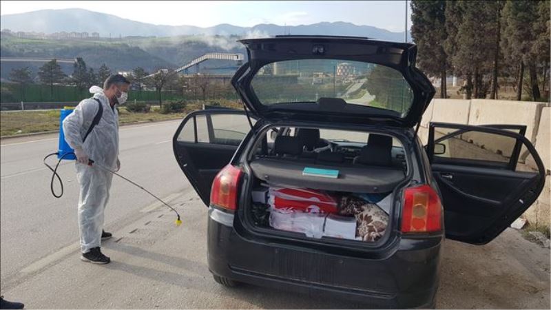 Karabük´e giriş yapan tüm araçlar belediye ekiplerince tek tek dezenfekte edilirken, sağlık ekipleri ise araçlardaki vatandaşların ateşlerini ölçtü. Polis ekipleri ise şehir dışından gelen araçları tek tek kayıt altına aldı.