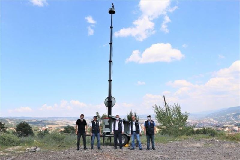 Karabük Orman İşletme Müdürlüğü Merkez Orman Emval Deposuna ormanları insansız olarak gözetleyip orman yangınlarını tespit etmek amacıyla Kameralı Mobil Yangın Gözetleme Kulesi kuruldu.