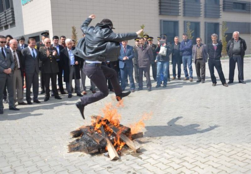 Karabük Üniversitesi Halk Oyunları Ekibinin, çeşitli yörelere ait gösteri sunduğu program, kültür merkezinin bahçesinde, baharı müjdeleyen nevruz ateşinin yakılması ve katılımcıların ateşin üzerinden atlamasıyla sona erdi.
