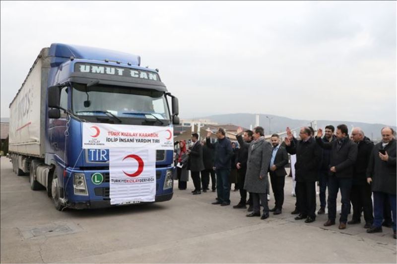 'Şuana kadar 500 bin insan hayatını kaybetmiş durumda, milyonlarca insan yerinden ve yurdundan edildi. İdlib´te de yaklaşık 4 milyon insan, bir soykırımla, hayatını kaybetmekle karşı karşıyalar. Şuanda bir göç dalgası ülkemize doğru devam etmekte. İçişleri Bakanımız Süleyman Soylu´nun başkanlığında AFAD, Türk Kızılayı ve sivil toplum kuruluşlarıyla yapılan toplantıda yardım çağrısı yapılmıştı. Bu kapsamda Türk Kızılayı Karabük Şubesi olarak ilk tırımızı halkımızın destekleriyle İdlib´e göndermek üzere buradayız. Tırmızın içerisinde 400 çuval un, bin adet battaniye, 5 bin adet çocuk maması ve çok sayıda kıyafet bulunmakta. Oradaki bu zulüm, eziyet sürdüğü sürece bizde yardım etmek zorundayız.'