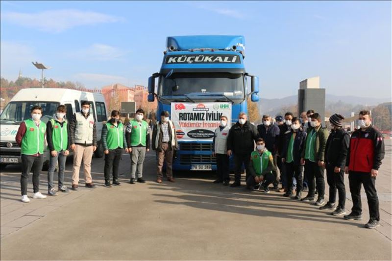 Yardım tırının önünde konuşma yapan ve 10 Aralık Dünya İnsan Hakları Günü gibi özel bir günde ülkenin 81 ilinden yüzlerce insani yardım tırının mazlumlar için yola çıktığını belirten Karabük Genç İHH Başkanı Mustafa Emir Kurşun, “İHH İnsani Yardım Vakfı olarak bugüne kadar milletimizin destekleriyle milyonlarca kişiye yardım ulaştırdık ve ulaştırmaya devam ediyoruz. Şimdi de “Rotamız İyilik, Yükümüz İnsanlık” diyerek kışın zor şartlarında çadırlarda kalan Suriyeli mazlumlar için bir yardım kampanyası başlattık. Yıllardır zor şartlar altında ve imkânsızlıklar içinde yaşamak zorunda kalan kadınları, yaşlıkları çocukları ve kimsesizleri asla yalnız bırakmayacağız” dedi.