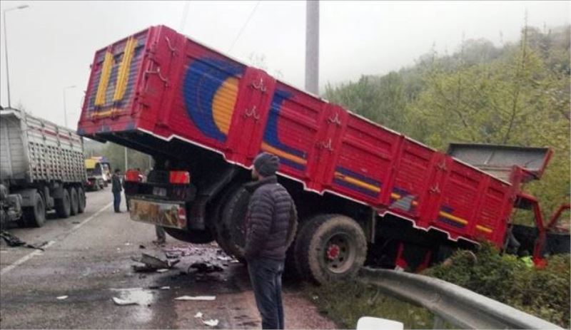 Kaza sonrası uzun süre trafiğe kapalı olan yol ise, vinçlerin yardımı ile TIR ve kamyonun kaldırılması sonrası ulaşıma açıldı.