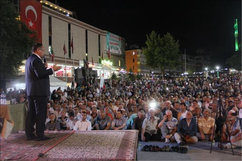 Mustafa Karataş, “Kainatı yoktan var eden kurda kuşa rızkını veren, çayırda ot bitiren, bizi mümin kılan, bizi iman kardeşi kılan, vatan veren, bayrak veren, bizleri kardeş kılan, sağlık veren, mülk veren, evlat veren, bizim aramızda birliği kardeşliği samimiyeti ziyade eyleyen Allah´a hamdolsun. Sizi hesap etmeyenler gizli hesaplarının içerisine katmayanlar 15 Temmuz gecesi büyük bir yenilgiye uğradılar ve bu milletin ne kadar büyük olduğu aziz olduğu ne mübarek bir millet olduğu biliniyordu. Ey Türk milleti, ey aziz millet sen ne kadar büyüksün ki kanın tevhidi kurtarıyor. Zalimlere, hainlere, katillere geçit vermiyor. Siz çok büyüksünüz. Ben bir hoca olarak aranızdan bir kardeşiniz olarak devletin kurumları devlet olarak bu 15 Temmuz gecesi sizin gerinizde kaldık. Millet devletin kurumlarını, hacısını, hocasını, alimini geçti. Eli öpülecek, alnı öpülecek, ayakları öpülecek bir millet olduğunu bütün dünyaya haykırdı. Onun için Allah´a yeniden hamdediyoruz ki böyle bir milletin evladıyız. Böyle bir millet var karşımızda Rabbime şükürler olsun” dedi.