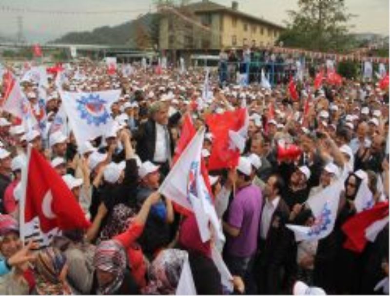Biz yüzde 47.1 imzaladık, KARDEMİR ilk üç aylık karını açıkladı. KARDEMİRin 2013 yılının ilk çeyreğinde açıkladığı kar 47.1 trilyon. Yani zam oranımız kadar KARDEMİR triyon kar açıkladı. Keşke bilseydim yüce rabbim bizi takip ediyor 48 yapardım, 49 yapardım. Allah verdikçe veriyor. Sendikal bir devrim yaptığımızı biliyoruz, farkındayız. Yıllar sonra KARDEMİRde güzel bir toplu sözleşme yaptık. Büyük mücadele verdik, bu mücadelenin sonunda böyle bir mutluluğu hak ettiğimizi düşünüyoruz. İş arkadaşlarımızın eşleri, çocukları burada, demek ki evlerde bir mutluluk var, Karabükte bir mutluluk var. Artık yeni bir dönem başlıyor. KARDEMİRde üretim rekorları kırdınız ve biraz önce açıkladığım gibi kar açıklattırdınız. Sendika başkanınız olarak bu süreçten sonra KARDEMİRdeki üretimi en yüksek noktalara çıkarmanızı istiyorum. Bu süreçte KARDEMİR işçisi aldığının hakkını verecek kadar yürekli, aldığının hakkını bugüne kadar nasıl verdiyse bundan sonrada vereceklerine inanıyorum.