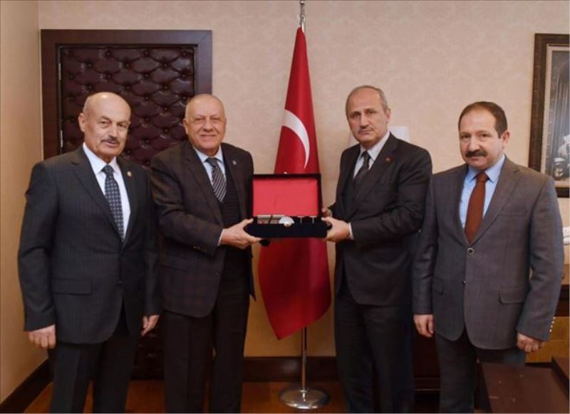 KARDEMİR AŞ. Yönetim Kurulu Başkanı Kamil Güleç, beraberinde başkan vekili Ömer Faruk Öz ve Yönetim Kurulu üyesi Osman Kahveci´den oluşan heyetle Ulaştırma ve Altyapı Bakanı Mehmet Cahit Turhan´ı makamında ziyaret etti.