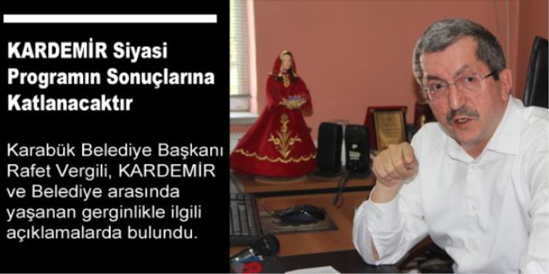 Belediye Başkanı Rafet Vergili düzenlediği basın toplantısında son gelişmeleri değerlendirerek, “ Bu yaşanan gelişme Karabük’ün veya Kardemir’in menfaati ile ilgili bir program değildir. Bizde gerekli tavırlarımızı ve davranışlarımızı ortaya koyacağız. Biz hiçbir şekilde KARDEMİR’in zararı uğramasını, ekonomik bir zarara uğramasını isteyen birisi değiliz. Şu anda KARDEMİR yönetiminin asıl işi ekonomik program olması gerekirdi siyasi programın içerisine girdiklerine göre siyasi programın sonuçlarına da kendileri katlanacaktır” dedi.
