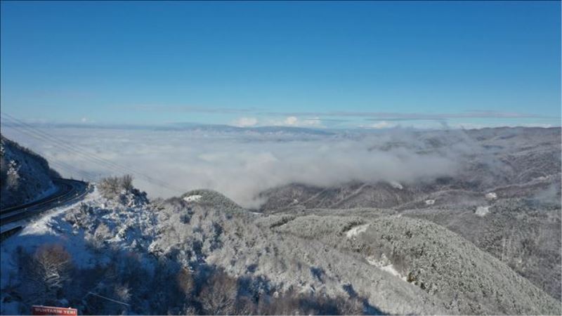 Bolu´da, son günlerde aralıklarla devam eden kar yağışıyla birlikte yüksek kesimler beyaz örtüyle kaplandı. Özellikle, Türkiye´nin en önemli kara yolu geçiş güzergahlarından biri olan Bolu Dağı mevkiinde etkili olan kar yağışıyla birlikte, yeşil alanlarda kar kalınlığı 1 metreyi buldu. Zaman zaman yoğun sisin de etkili olduğu Bolu Dağı´nın havadan görüntüsü, kar yağışının ardından ortaya çıkan büyüleyici manzarayı da gözler önüne serdi. Çam ağaçlarıyla kaplı olan alanlarda oluşan beyaz şölen, kartpostallık görüntüler oluşturdu.