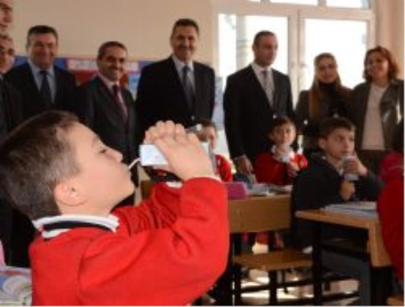 Vali Yardımcısı Çapar ve diğer katılımcılar daha sonra sınıfları gezerek öğrencilere süt dağıttılar.