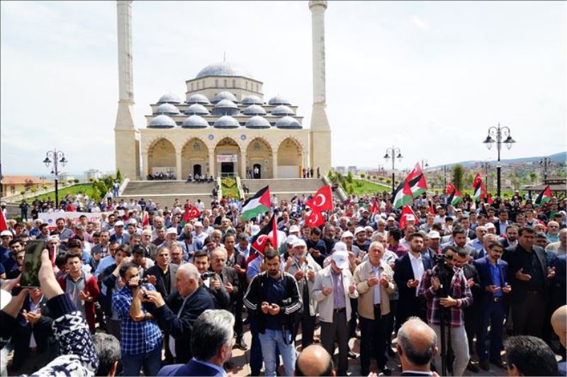 Ulu Cami bahçesine toplanan kalabalık adına mesajı Kastamonu Üniversitesi Uluslararası İlişkiler Bölümü 1. Sınıf Öğrencisi Mehmet Ali Aydın okudu. Aydın, bütün Birleşmiş Milletler kararlarına, Uluslararası kabullere rağmen ABD Yönetiminin Kudüs´ü İsrail´in başkenti olarak tanıdığına dikkat çekerek, “Bu haksız, yersiz karar İstanbul´da toplanan İslam İş Birliği Konferansında yok sayılmış ardından Birleşmiş Milletler güvenlik Konseyinde 128´e 9 oy ile reddedilmiştir. Bütün dünyanın karşı çıkmasına rağmen ABD´nin büyükelçiliğini Kudüs´e taşıması ve açılışını yapması bardağı taşıran son damla olmuştur. ABD´nin bu sorumsuz davranışlarından cesaret alan terörist İsrail yönetimi, bu kararı protesto etmek isteyen, silahsız ve barışçıl bir yürüyüş düzenleyen Filistinli mazlumları kadın, çocuk, engelli demeden, insafsızca katlederek 60´ın üzerinde Filistinlinin şehadetine 2 bin 400 ünün yaralanmasına sebep olmuştur. Kan ile beslenen, büyüyen, güçlenen İsrail Devleti; işgalci, sömürgeci tutumuyla bir kez daha Ortadoğu´da gözyaşının mimarı olmuştur. ABD´nin ve sözde demokratik devletlerin desteğini alarak, Filistinlilere büyük acılar yaşatan, insanlık dışı muameleler yapan İsrail Hükumetini ve bu katliamın fitilini ateşleyen ABD´yi şiddetle telin ediyoruz” dedi.