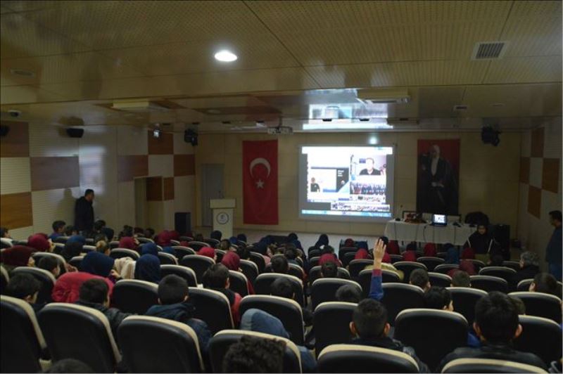Kastamonu Şehit Mehmet Yılmaz İmam Hatip Ortaokulu öğrencileri, NASA´da görev yapan Dr. Umut Yıldız ile canlı bağlantı gerçekleştirerek uzay hakkında bilgi aldı.