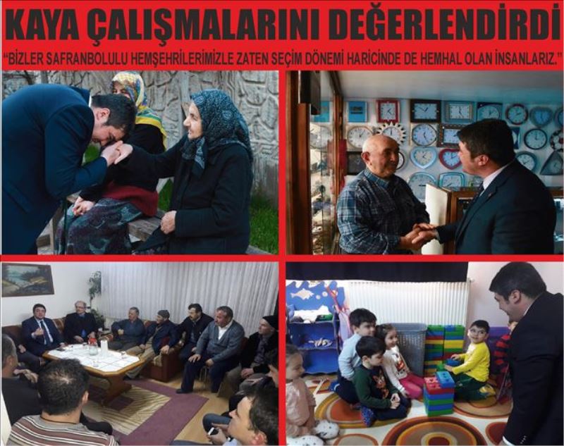 Vatandaşlarla her gün bire araya geldiklerini ifade eden Kaya, “İnsanlarımızla buluşuyor hasbihal ediyoruz, bundan önce nasıl isek bundan sonra da aynı samimiyet ve tevazu ile yaklaşacağız. İnsanlar bizleri gördüklerinde mutlu oluyorlar. Bizlere inanıyorlar çünkü, bizler bundan önceki yerel yönetim başarısını ispat etmiş bir AK Parti belediyeciliği ile Safranbolu´daki sancağı taşımaya, hatta daha da yukarılara çekmeye devam edeceğiz. İnsanlarımızın yüzleri gülüyor, gözleri parlıyor, bizlerde bu doğrultuda mutlu oluyoruz. Bu doğrultuda aldığımız hayır duaları ile daha da azimle çalışıyoruz. Aynı zamanda diğer partilerin adaylarının bizlerin mutluluğundan dolayı biraz sıkıntıya girdiğini görüyoruz, bu da bizleri ayrıca mutlu ediyor. Ben bir kez daha bizlerden hayır dualarını ve desteklerini esirgemeyen, her daim yanımızda olan tüm Safranbolulu hemşerilerime sonsuz teşekkürlerimi sunuyorum” dedi.