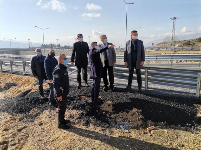 İncelemede alternatif yol güzergahı hakkında bilgi alışverişinde bulunulurken, kavşak rehabilitasyon çalışmaları hakkında Kaymakam Türköz´e bilgiler verildi.