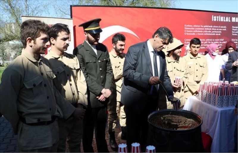 Karabük Üniversitesi (KBÜ) Rektörü Prof. Dr. Refik Polat, tarafından Teknoloji Fakültesi önünde 18 Mart Çanakkale Zaferi ve Şehitleri Anma Günü etkinlikleri kapsamında öğrencilere hoşaf ve tahıllı ekmek ikram ederken etkinlikte, Çanakkale savaşındaki zorlukların ve ecdadın hangi şartlarda bu toprakları koruduğunun anlaşılması amaçlandı.