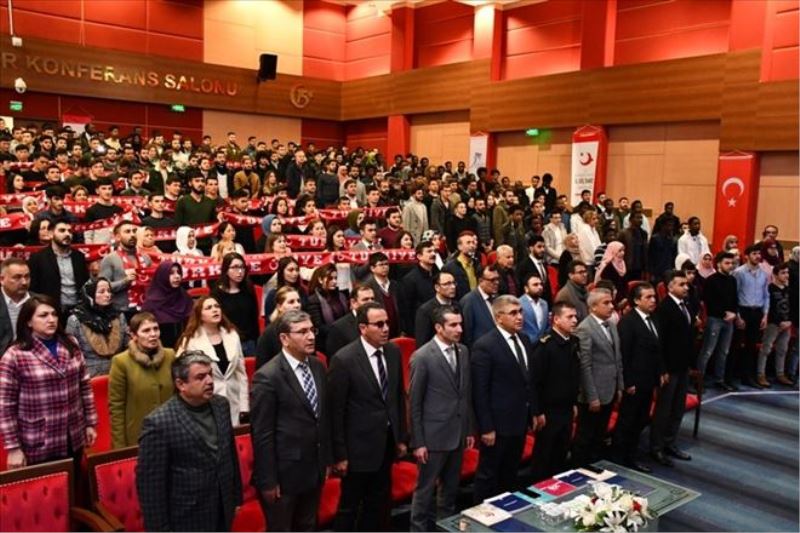 Karabük Üniversitesi 15 Temmuz Şehitleri Konferans Salonunda düzenlenen etkinliğe Vali Fuat Gürel´in yanı sıra KBÜ Rektörü Prof. Dr. Refik Polat, İl Jandarma Komutanı Ali Sefa Yılmaz, kurum müdürleri, öğrenciler ve uluslararası misafir öğrenciler katıldı.