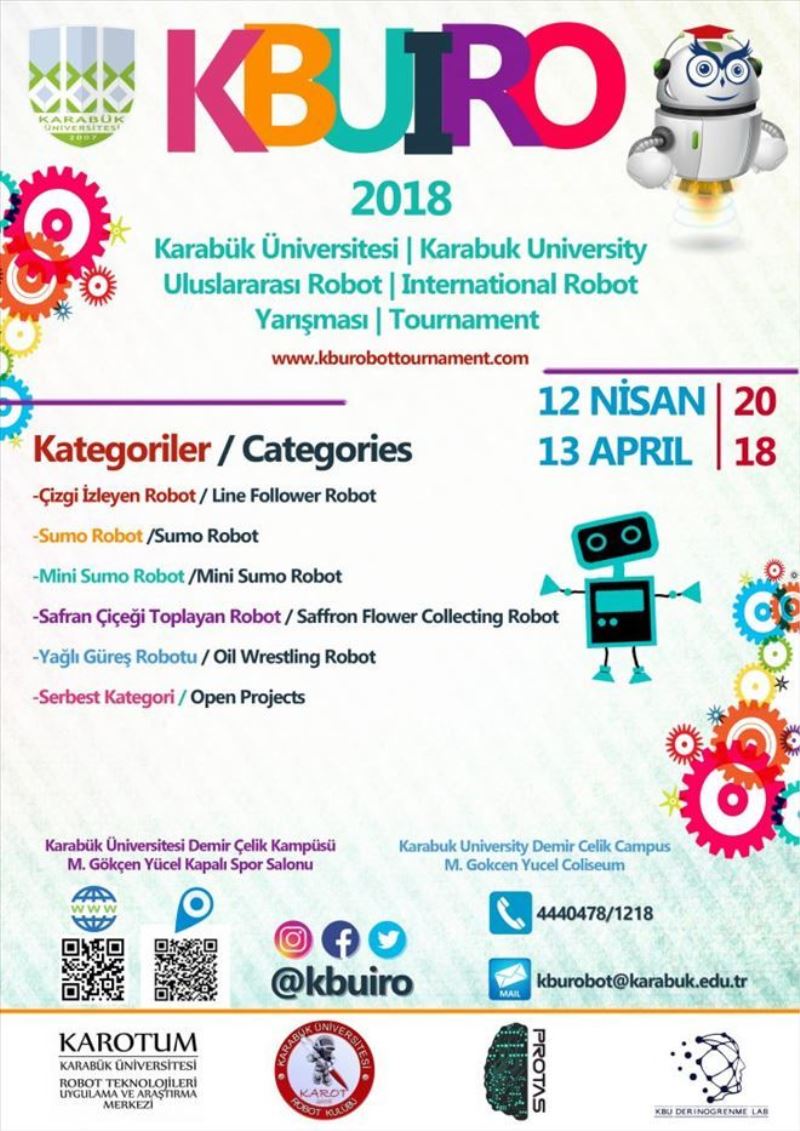 Karabük Üniversitesi tarafından 12-13 Nisan 2018 tarihlerinde gerçekleşecek “Karabük Üniversitesi Uluslararası Robot Yarışmasında (KBUIRO)” robot ve robot teknolojileri konusunda hazırlanmış farklı kategorilerdeki projeler yer alacak. Yarışmada milli güreşimiz olan ‘yağlı güreş yapan robotlar´ kategorisiyle dünyada bir ilke de imza atılıyor. Ayrıca ‘safran çiçeği toplayan mobil robot´ yarışmanın özgün bir değeri olarak karşımıza çıkıyor.