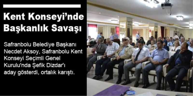 Safranbolu Kent Konseyi Seçimli Genel Kurulu TSO Toplantı salonunda yapıldı. Çoğunluğun sağlandığı genel kurul sert tartışmalara sahne oldu. Mevcut Başkan Feride Demiralp`in tekrar aday olmasının ardından Safranbolu Belediye Başkanı Necdet Aksoy da, karşısına iş adamı Şefik Dizdar`ı aday gösterdi. Sürpriz bir şekilde Dizdar`ın aday gösterilmesine şaşıran Genel Kuruldakiler tepki gösterdi. Yaşanan tartışmaların ardından Dizdar adaylıktan çekilirken, Demiralp 3`de 2 oy çokluğunu alamadığı için Genel Kurul ertelendi.