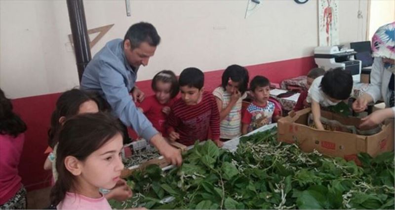 Mahallede bol miktarda dut ağacı bulunduğunu, bu nedenle böceklerin beslenme sıkıntısı yaşamadığını ifade eden Şükran Özkan, öğrencilerin okula gelirken dut yaprağı getirdiklerini söyledi.