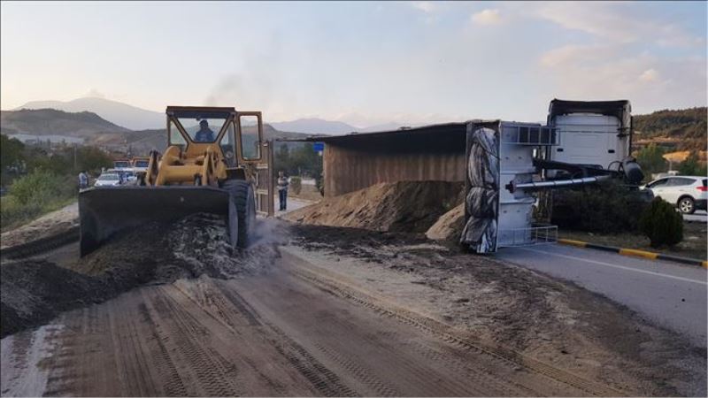 Kaza, Karabük - Ankara D755 karayolunda meydana geldi. Edinilen bilgilere göre Zafer E. idaresindeki 14 FM 636 plakalı kum yüklü tır, Karabük istikametinden Eskipazar istikametine seyir halinde iken sürücüsünün kontrolünü kaybetmesi sonucu refüje çıkarak devrildi. Sürücünün tırı yolun kenarında bulunan bahçeye düşmesini son anda yaptığı manevra ile kurtardığı öğrenildi. Tır dorsesinin devrilmesi sonucu içerisinde yüklü olan tonlarca kum yola döküldü. Kazada kimse yaralanmazken tırın karşı şeride geçmemesi ise büyük faciayı önledi. İhbar üzerine olay yerine polis ve Karayolları Müdürlüğüne ait ekipler sevk edildi. Çevrede güvenlik önlemleri alındıktan sonra yola dökülen kum temizlenerek trafiğe açıldı. Olay yerinde kimliği belirlenemeyen bir kişinin minibüsünü yolun ortasına bırakması sonucu sürücüler zor anlar yaşarken, araç bulunduğu yerden polis ekiplerinin müdahalesi ile yoldan çekildi.