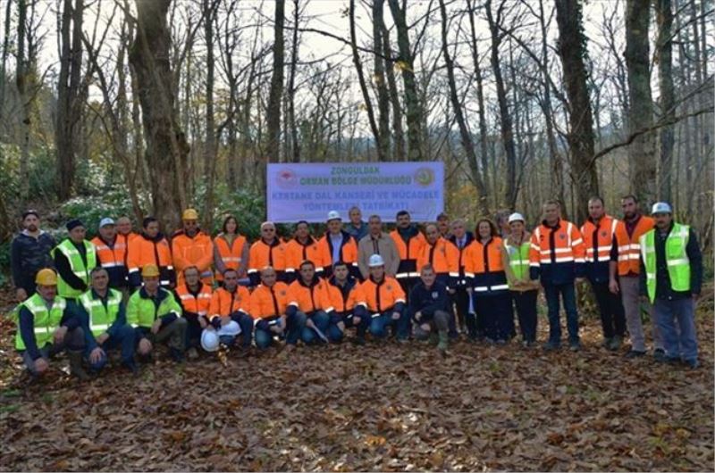 Bartın İşletme Müdürü ve Kurucaşile İşletme Şefi tarafından tatbikat sahası hakkında verilen kısa brifingin ardından konuşan Bölge Müdürü Zejerşya Beyazlı, “Üreticilerimize, çalışanlarımıza, kestane ile ilgili olan insanlara, hasat ederken, kestane ile ilgili faaliyette bulunurken nelere dikkat etmeliyiz ki bu dal kanserinin yayılmasına mani olalım ve bir taraftan da üretimimizi arttıralım. İşte bu sorulara cevap vermek için bir araya geldik. Kestane dal kanseri ile ilgili olarak yapılacak en önemli mücadele meşcere mukavemetini artırmaktır. Bunun içinde periyodik bakımların zamanında, yeterli düzeyde ve aksatılmadan mutlaka yapılması gerekiyor. Önleyici tedbir olarak ilk ve en önemli faktör budur. Ayrıca Kestane Eylem Planı´na göre çalışmaların devam etmesi planlanmaktadır. Böylece kestane ormanlarında bakım ve hastalıklarla mücadele faaliyetleri devam ederek; yöre halkının kısa ve orta vadede ekonomisine katkısı devam edecek, meyve verimi ve üretimi artacak, hastalıklara karşı daha dirençli ormanlar kurulacak ve ormanlarımızın fonksiyonlarında çok yönlü faydalanma stratejisi gerçekleşecektir.” dedi.