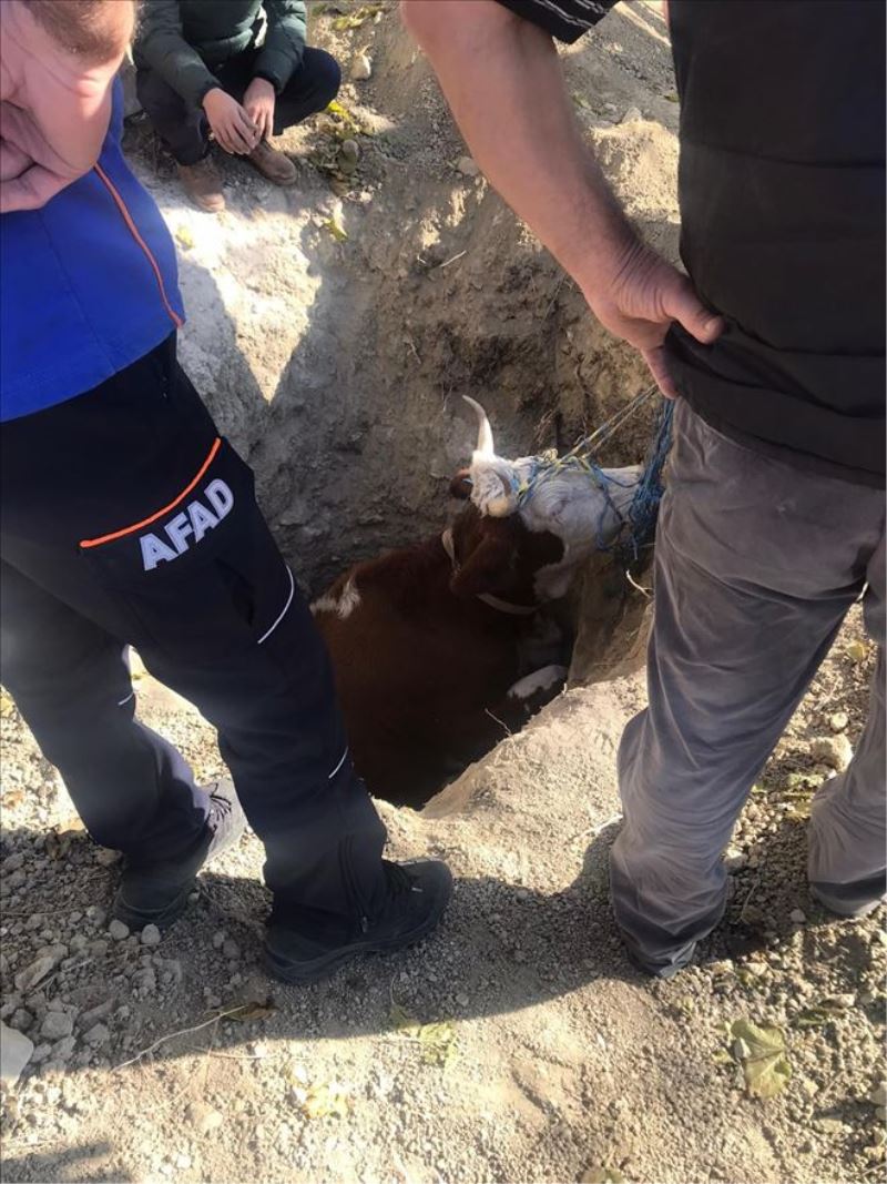 Karabük merkeze bağlı Kahyalar Köyünde gezindiği sırada 3 metre derinlikteki kuyuya düşen inek, itfaiye ve AFAD ekiplerinin çalışması sonrası kurtarıldı.