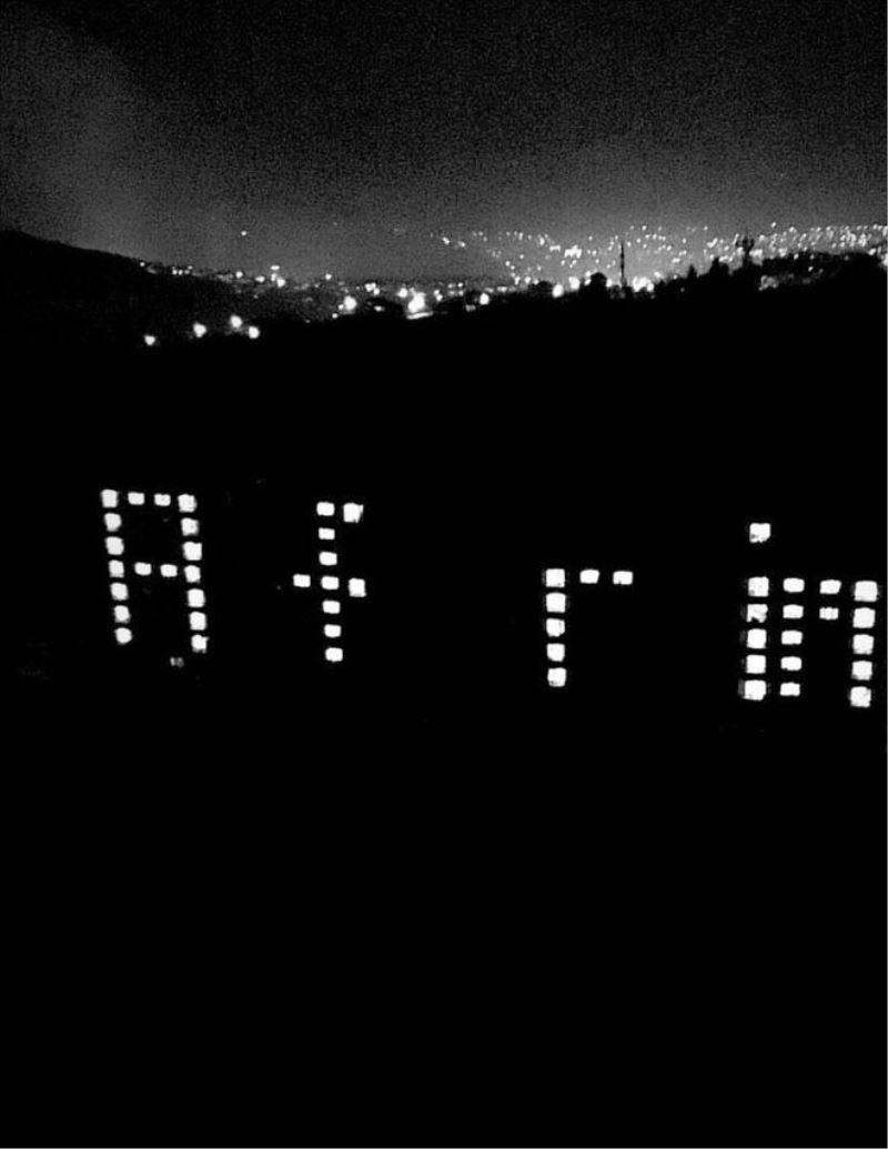 Karabük´te Yüksek Öğrenim ve Kredi Yurtlar Kurumu´na (KYK) bağlı öğrenci yurtlarında kalan öğrenciler, Zeytin Dalı Harekatı´nda görevli askerlere desteklerini göstermek için yurt binalarını 'Afrin' yazısıyla ışıklandırdı.